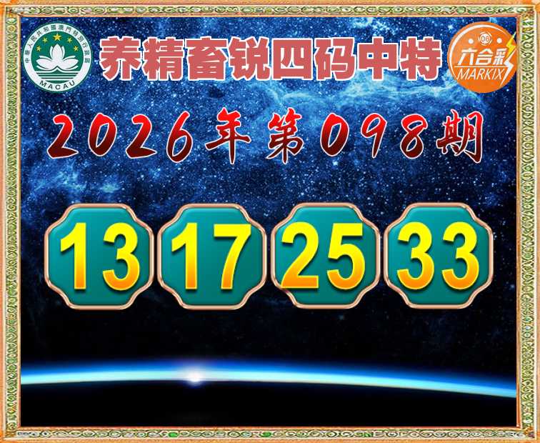 098期:『养精畜锐』 四码中特【13.17.25.33】开:17