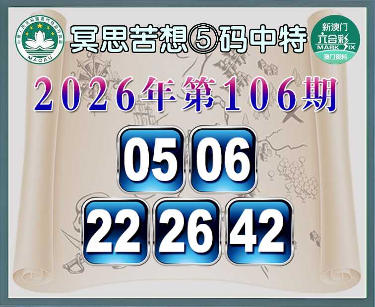 106期:〖冥思苦想〗 ⑤码中特【05.06.22.26.42】开:22