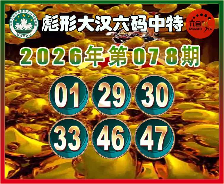 078期:〖彪形大汉〗 六码中特【01.29.30.33.46.47】开:46