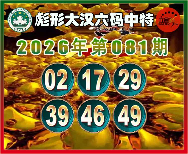 081期:〖彪形大汉〗 六码中特【02.17.29.39.46.49】开:17