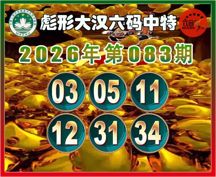 083期:〖彪形大汉〗 六码中特【03.05.11.12.31.34】开:05