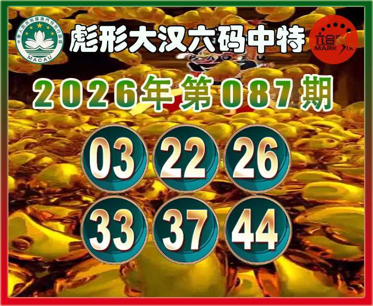 087期:〖彪形大汉〗 六码中特【03.22.26.33.37.44】开:26