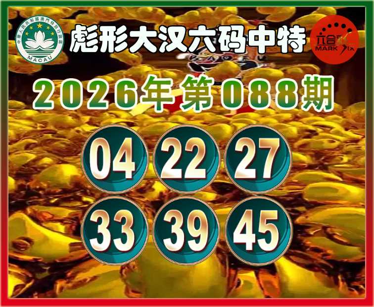 088期:〖彪形大汉〗 六码中特【04.22.27.33.39.45】开:27