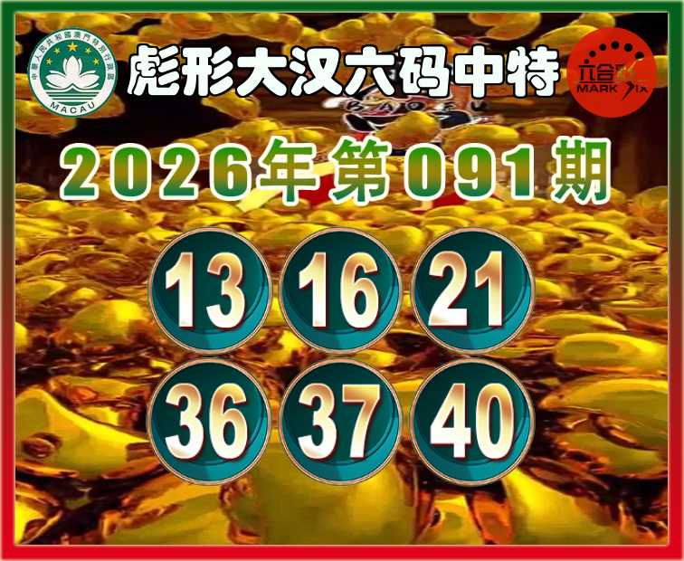 091期:〖彪形大汉〗 六码中特【13.16.21.36.37.40】开:37
