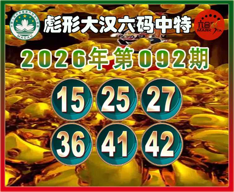 092期:〖彪形大汉〗 六码中特【15.25.27.36.41.42】开:06