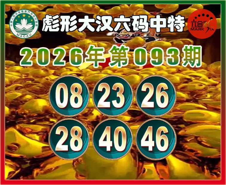 093期:〖彪形大汉〗 六码中特【08.23.26.28.40.46】开:40