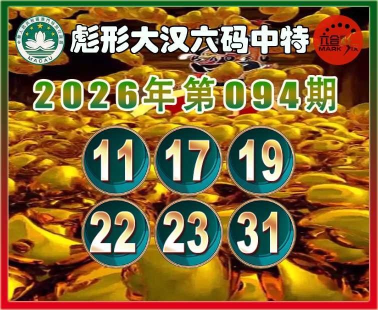 094期:〖彪形大汉〗 六码中特【11.17.19.22.23.31】开:17