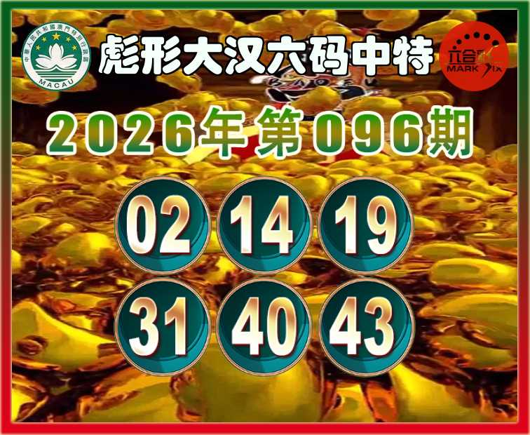 096期:〖彪形大汉〗 六码中特【02.14.19.31.40.43】开:43