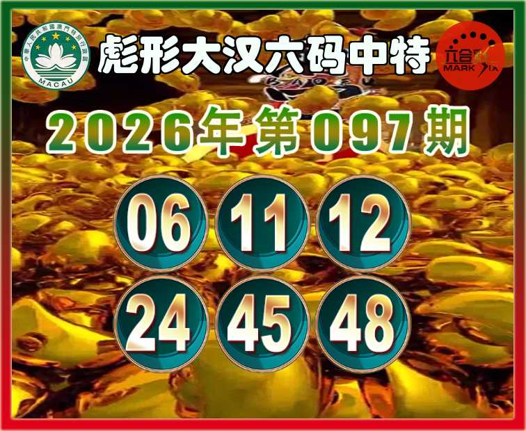 097期:〖彪形大汉〗 六码中特【06.11.12.24.45.48】开:11