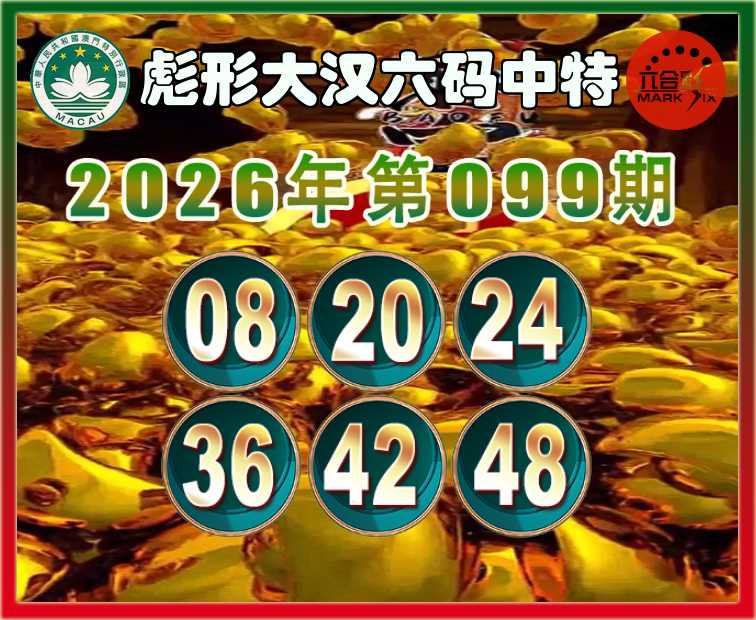 099期:〖彪形大汉〗 六码中特【08.20.24.36.42.48】开:12