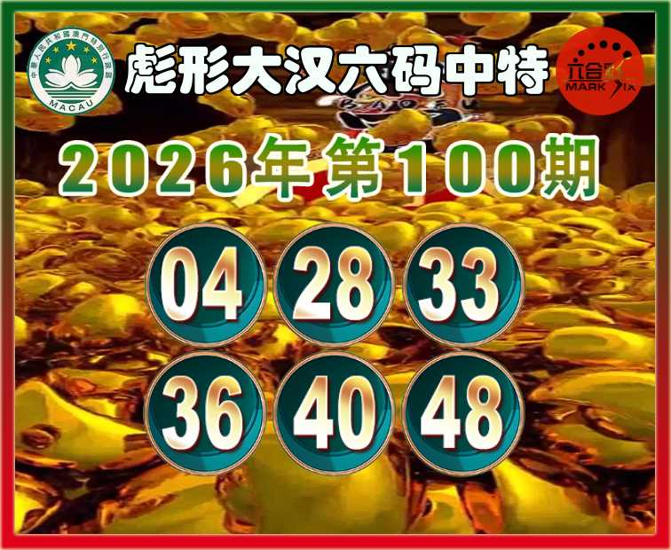 100期:〖彪形大汉〗 六码中特【04.28.33.36.40.48】开:33