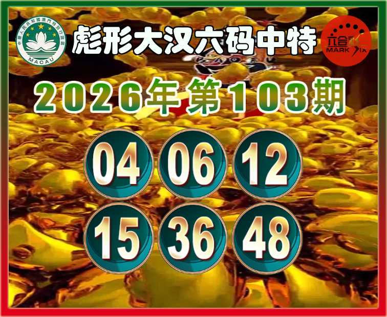 103期:〖彪形大汉〗 六码中特【04.06.12.15.36.48】开:06