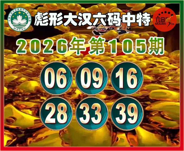 105期:〖彪形大汉〗 六码中特【06.09.16.28.33.39】开:28