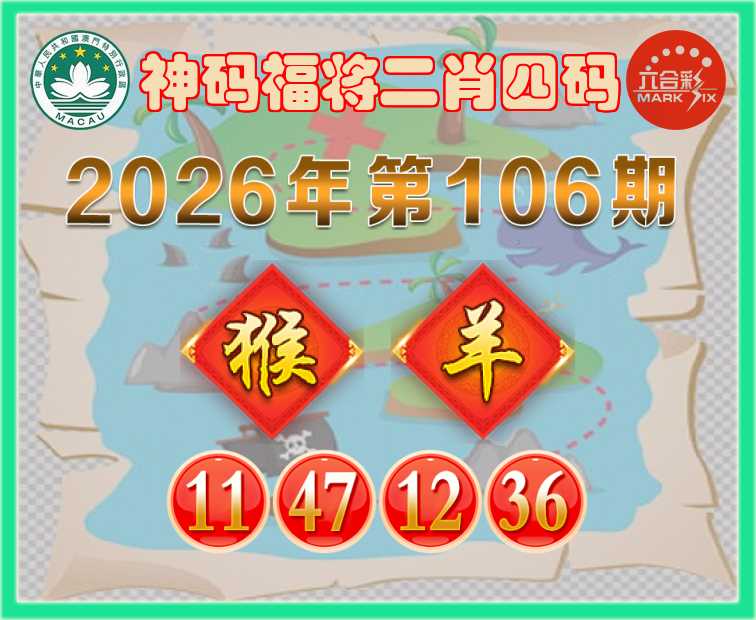 106期:『神码福将』 二肖四码【猴羊】【11.47.12.36】开:00准