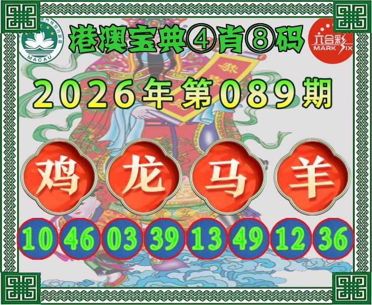 089期:〖港澳宝典〗 ④肖⑧码【鸡龙马羊】开:马49准