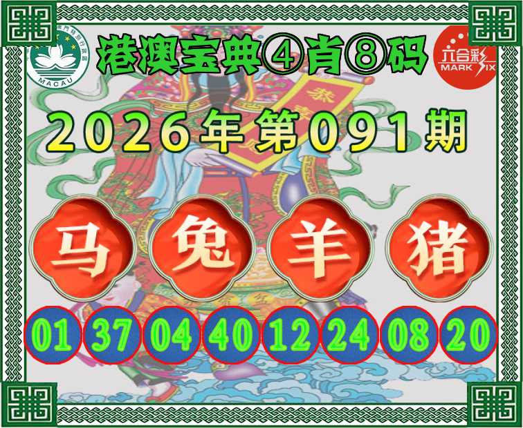 091期:〖港澳宝典〗 ④肖⑧码【马兔羊猪】开:马37准