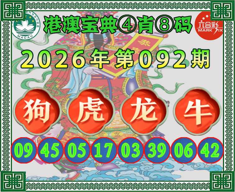 092期:〖港澳宝典〗 ④肖⑧码【狗虎龙牛】开:牛06准