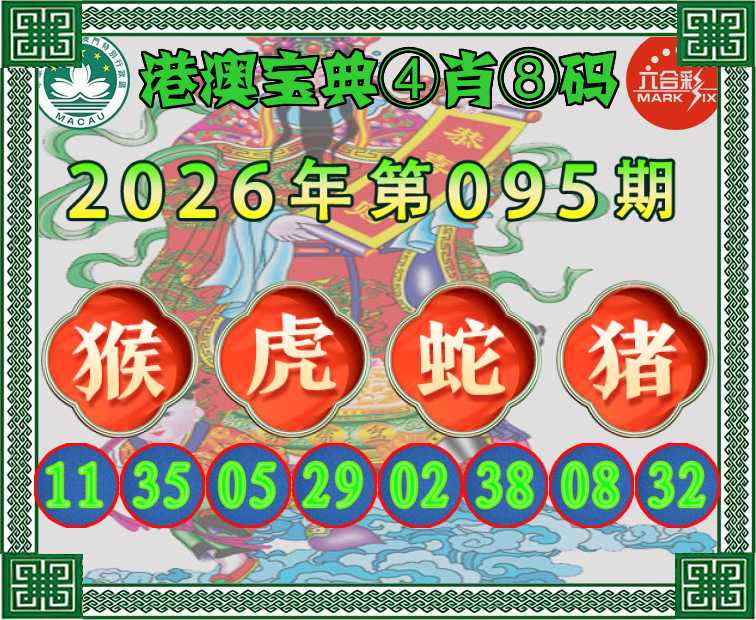 095期:〖港澳宝典〗 ④肖⑧码【猴虎蛇猪】开:猴35准
