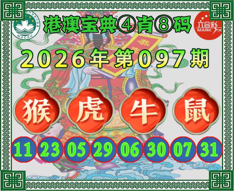 097期:〖港澳宝典〗 ④肖⑧码【猴虎牛鼠】开:猴11准