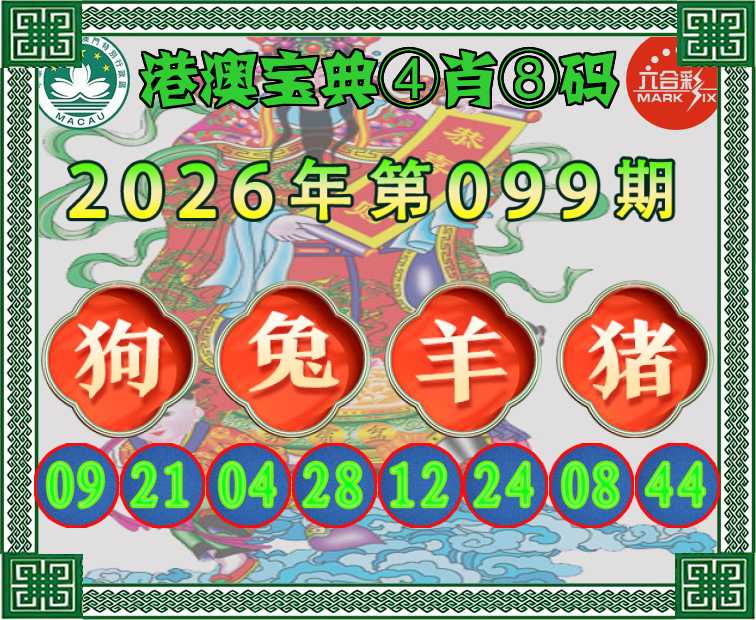 099期:〖港澳宝典〗 ④肖⑧码【狗兔羊猪】开:羊12准