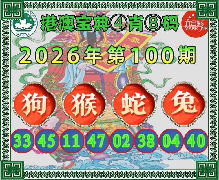 100期:〖港澳宝典〗 ④肖⑧码【狗猴蛇兔】开:狗33准