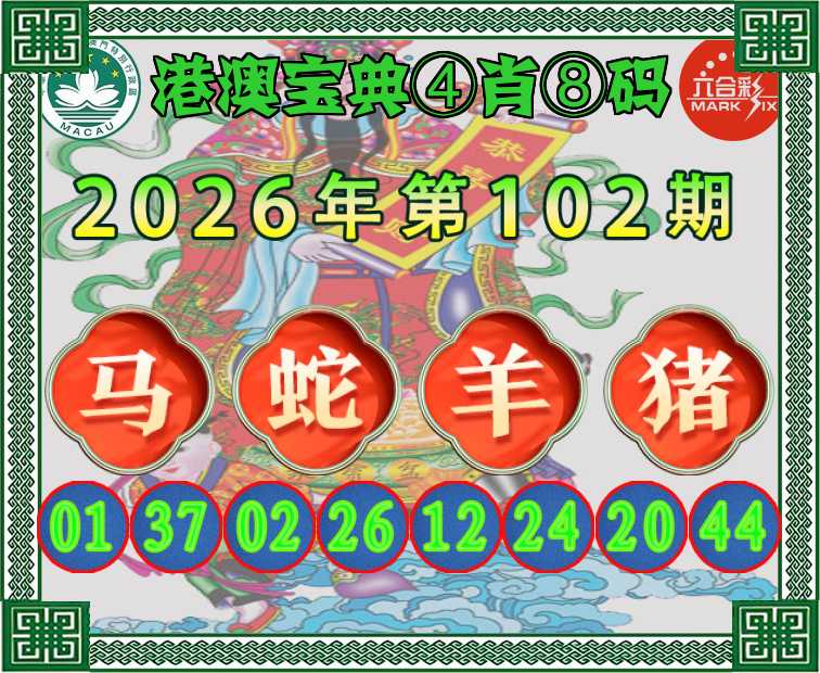 102期:〖港澳宝典〗 ④肖⑧码【马蛇羊猪】开:猪20准