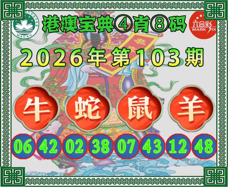 103期:〖港澳宝典〗 ④肖⑧码【牛蛇鼠羊】开:牛06准