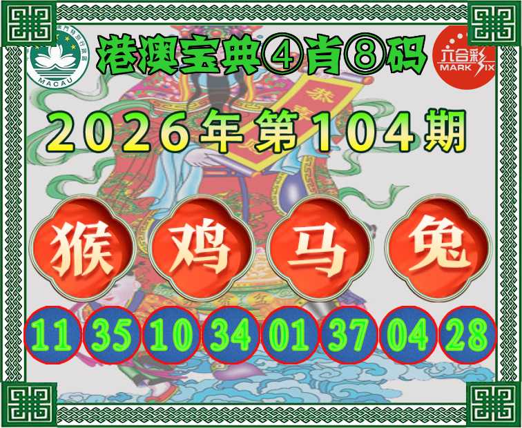 104期:〖港澳宝典〗 ④肖⑧码【猴鸡马兔】开:马01准