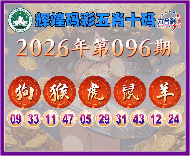 096期:〖辉煌码彩〗 五肖十码【狗猴虎羊】开:鼠43
