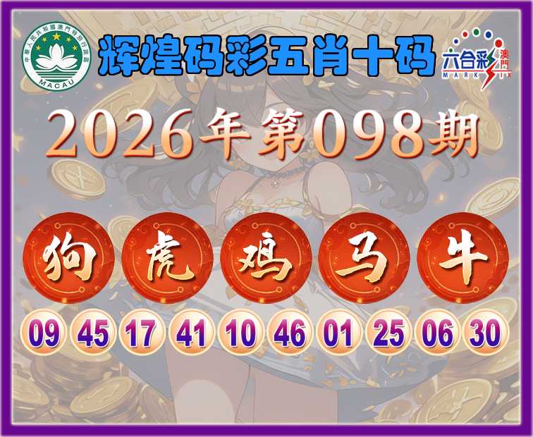 098期:〖辉煌码彩〗 五肖十码【狗鸡马牛】开:虎17