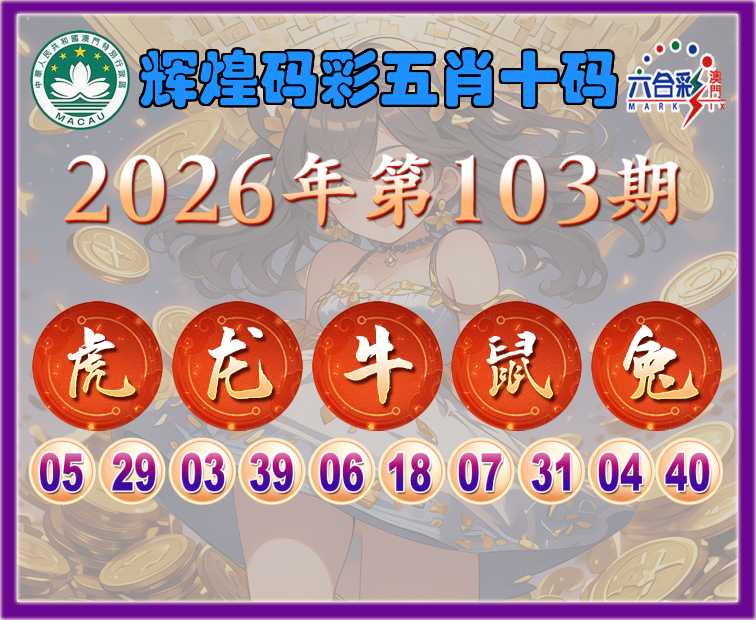 103期:〖辉煌码彩〗 五肖十码【虎龙鼠兔】开:牛06