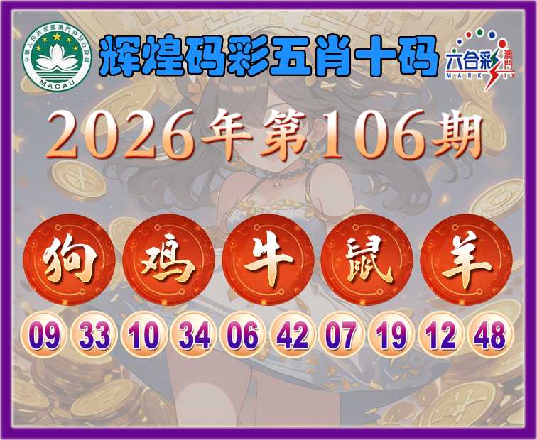 106期:〖辉煌码彩〗 五肖十码【狗鸡牛鼠羊】开:00准